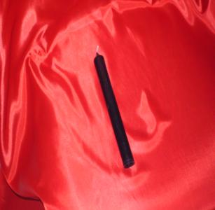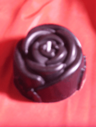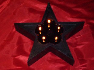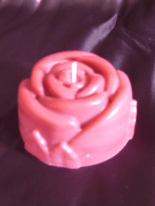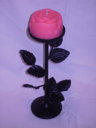 Musterbeispiel:: Rosenkerzenständer schwarz lackiert mit rosafarbener und roter Rosenkerze