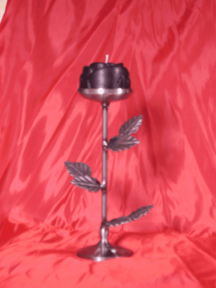 Musterbeispiel:: Rosenkerzenständer schwarz lackiert mit schwarzer Rose